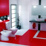 Accentul glossy va fi dat de o nuanta deschisa de gri placut care va pune in evidenta rosul si albul faiantei. Rezultatul oferit de aceste culori va fi unul pretentios, dar si elegant, cu tuse de deco design. Albul si rosul in baia dumneavoastra va aminti de stilul vintage, iar detalii de negru aduse in peisaj vor crea o atmosfera vintage intarita de modernismul oferit. O ambianta plina de veselie va fi data de faianta rosie din baie care va va face sa vibrati. Interesant este faptul ca combinatia de rosu si alb alaturi de piese moderne de mobilier va crea un design modern si cool. Ca sa nu fie un decor plictisitor, faianta alba va fi pusa in evidenta de faianta rosie, care sa creeze impresia de volum in baie. Baia in rosu si alb va oferi ambiante diferite in locuinta dumneavoastra, ambiante ca cea contemporana, romantica, vintage, dinamica. Dumneavoastra faceti alegerile potrivite in ceea ce priveste designul baii din locuinta. Baia in nuante de rosu si alb va va umple de energie si va va vitaminiza in fiecare dimineata.
